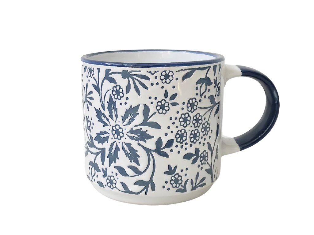 KUCHYNĚ A STOLOVÁNÍ Hrnečky Keramický hrnek s květy bílý (350 ml) /J